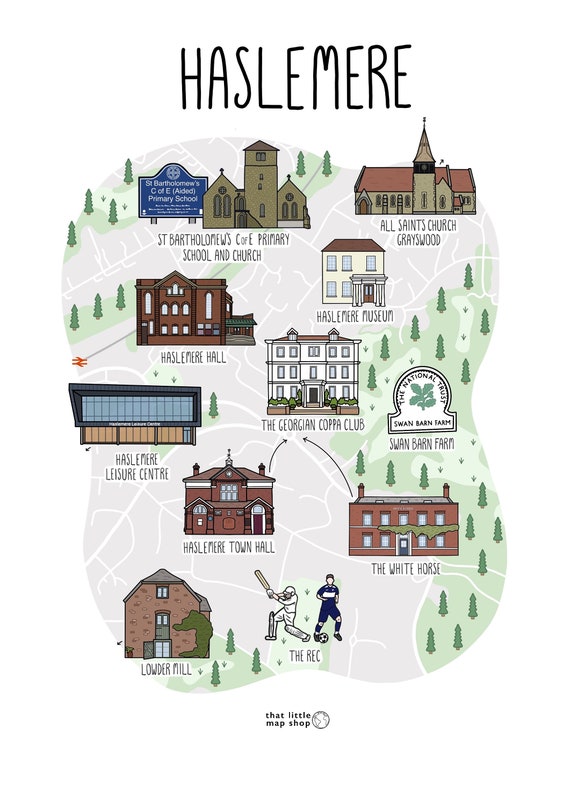 Haslemere Map Print Haslemere Map Illustrated Map of Haslemere