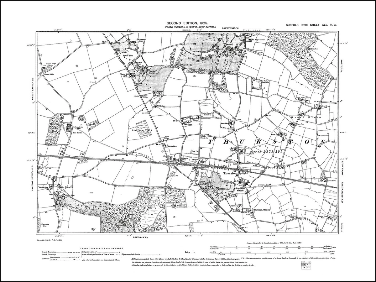 Thurston, Great Green, old map Suffolk 1905: 45NW repro | eBay