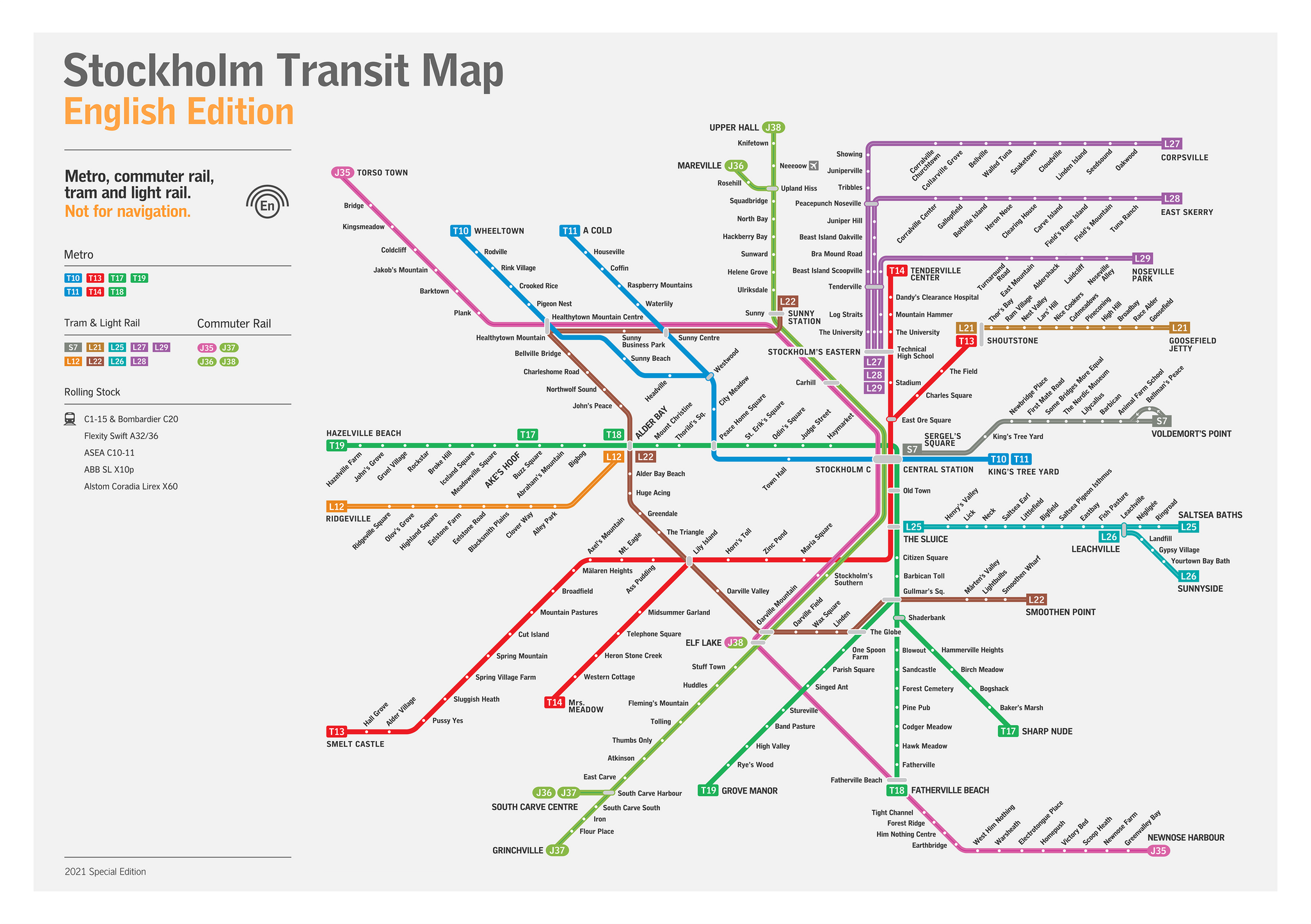 Stockholm Metro Map: Literal English Translation Poster (A2